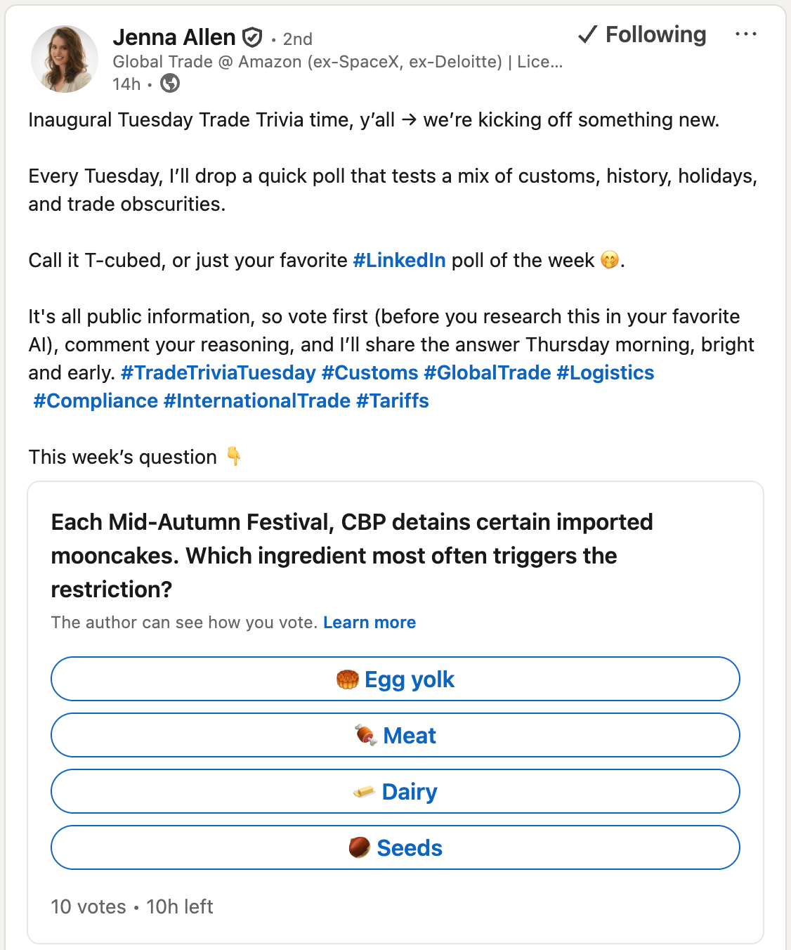 Every once in a while, we come across a like-minded trade professional on LinkedIn who’s a must-follow. Meet Jenna Allen. Her Tuesday Trade Trivia is packed with the kind of trade obscurities that make us excited to get out of bed.