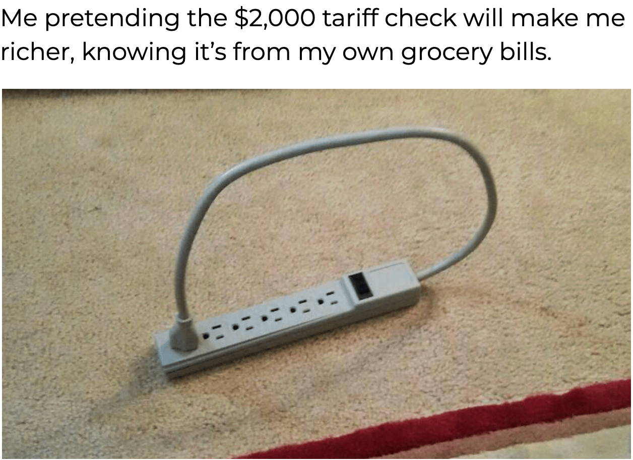 And if the $2,000 rebate hits our mailbox, is it a real relief, or just a way to make the tariffs palatable?